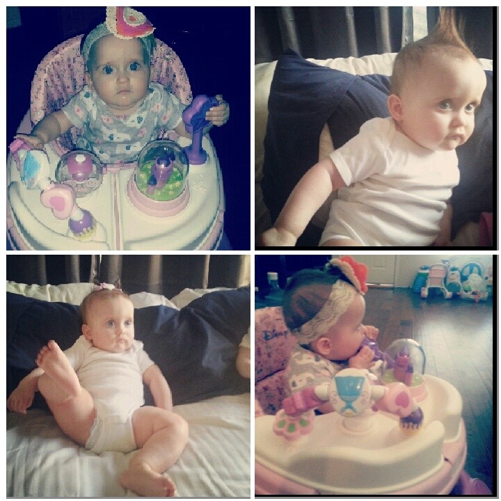 After every bite of her baby food she has to put her right hand in mouth, as if it doesn't taste the same without it. She's overall all very jolly and laid back. However when she does get mad, everyone knows because she YELLS loud.